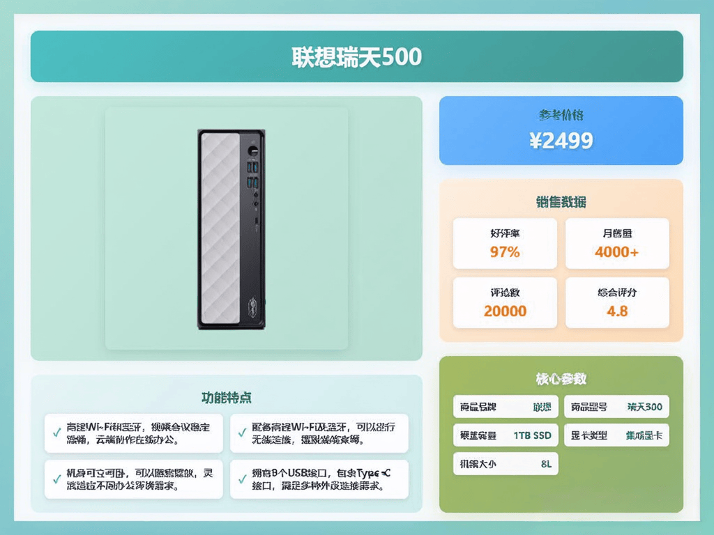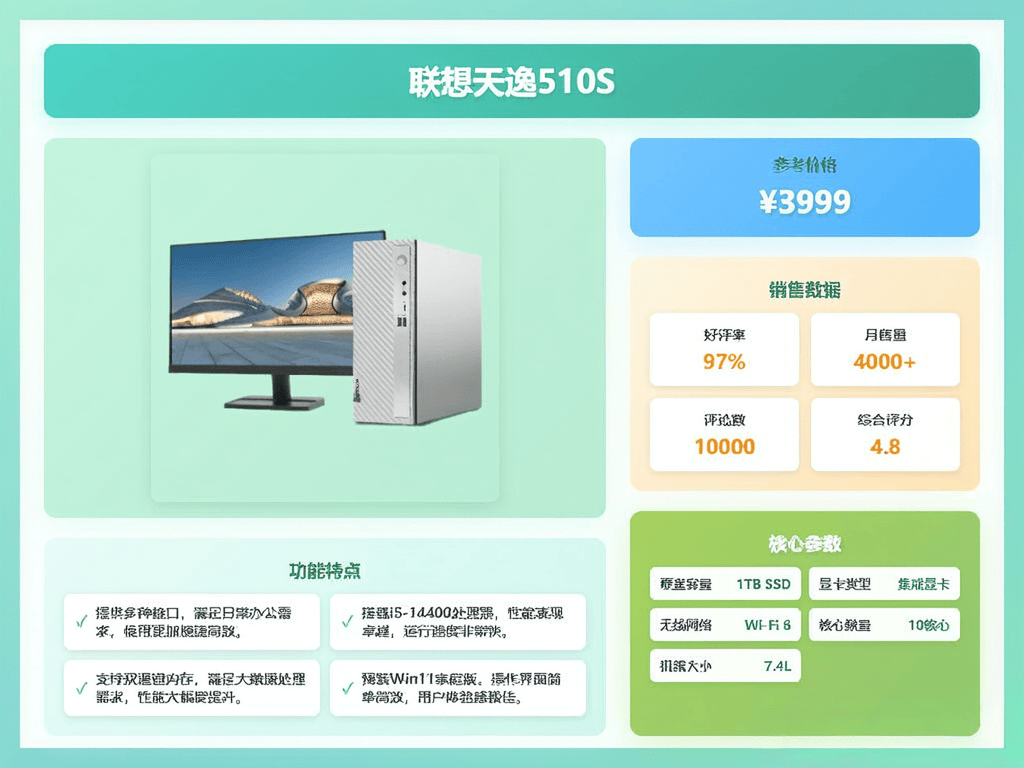1️⃣紧凑机身设计:这款联想扬天M4000q台式机拥有7.4L的小巧机身,放在桌面上不会占太多空间,适合办公室和家庭工作区。